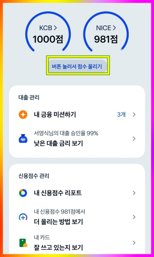 - 대출을 받은 후 연체 없이 꾸준히 상환하면 신용 점수가 개선됩니다.